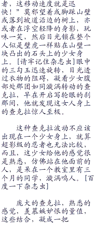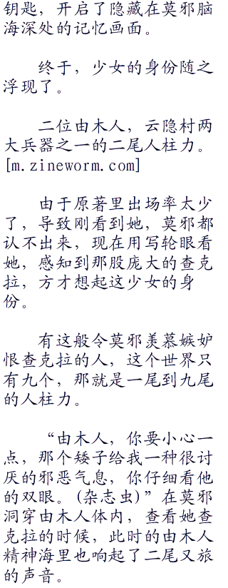 庞大的查克拉,熟悉的感觉,羡慕嫉妒恨的量值,这些结合,凝成一把钥匙,开启了隐藏在莫邪脑海深处的记忆画面。
