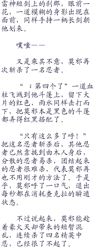 又是乘其不意,莫邪再次斩杀了一名忍者。