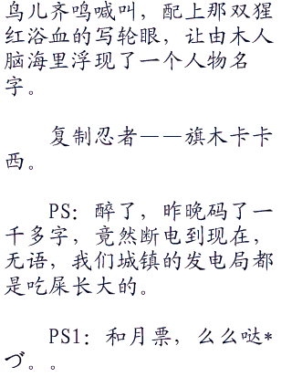 PS:醉了,昨晚码了一千多字,竟然断电到现在,无语,我们城镇的发电局都是吃屎长大的。