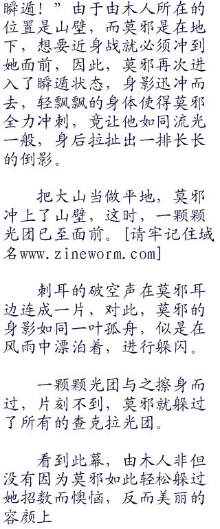 “瞬遁!”由于由木人所在的位置是山壁,而莫邪是在地下,想要近身战就必须冲到她面前,因此,莫邪再次进入了瞬遁状态,身影迅冲而去,轻飘飘的身体使得莫邪全力冲刺,竟让他如同流光一般,身后拉扯出一排长长的倒影。