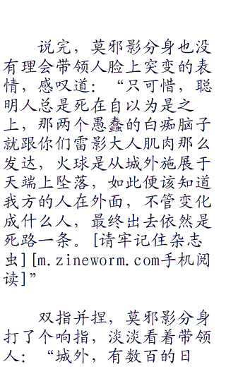 闻言,带领人的身体迅速绷紧,原本就已泛着凝重之色望着莫邪的眼眸更甚了,双手握着短剑握柄之处,全身闪烁银白中掺杂一抹蓝色的雷光,面对眼前这个少年,就算是他心目中最尊敬的人也无法不忌惮,更别说是他。