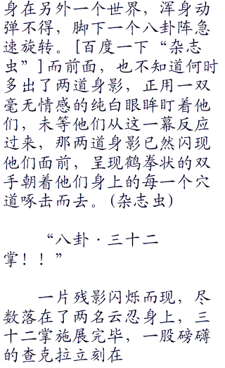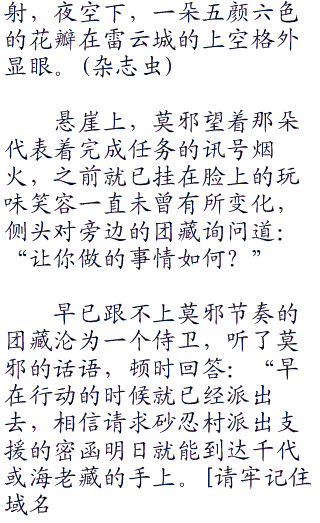 “速度一点,必须要在八分钟之内回到村子通报雷影大人。”