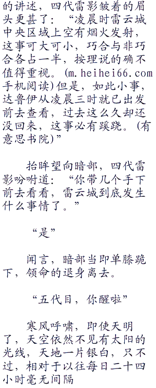 听到四代雷影的话语,暗部毫无隐瞒的将昨晚巡逻忍者所汇报的信息和让达鲁伊前去查看的事情尽数不漏的告知四代雷影。