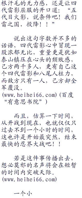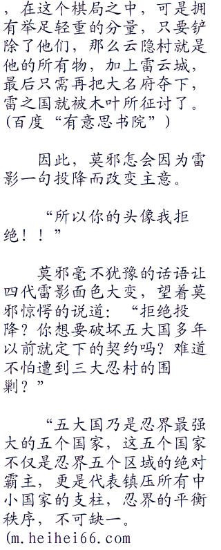 四代雷影下了一大跳,如果传承四代的云隐村毁在他的手上,那他将是雷之国的罪人,死后更没有脸去见他的父亲和历代雷影。