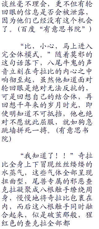奇拉比依然没有听出八尾牛鬼语气的绝望,得到须佐能乎的信息之后便立即告知四代雷影。