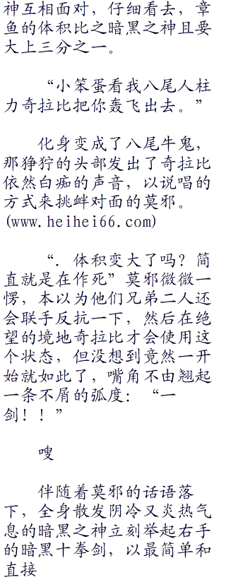 “须佐能乎,宇智波一族传说中的万花筒写轮眼才拥有的奥义忍术,只不过那个家伙的须佐能乎比当初的万花筒拥有者还要强大和恐怖。”八尾牛鬼像是认命了的说道,刚才他还有一丝希翼,但看到暗黑火焰凝聚而成全身散发丝毫不逊色他和奇拉比合作的完全体模式的气势,而这还只是轮回眼退化的写轮眼能力,再想到轮回眼最著名的地爆天星和超神罗天征,这次绝对是十死无生了。