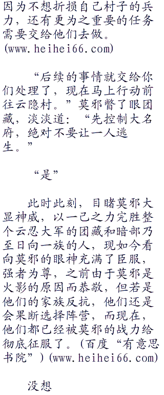 看到莫邪把八尾人柱力和四代雷影斩杀之后,团藏就带上自己的根部和暗部还有部分日向族人赶赴过来准备接受下面的命令,毕竟莫邪之所以不让他们出战,可不仅仅是