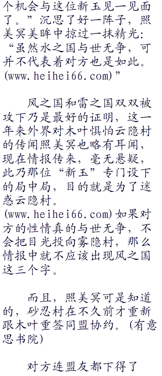 又在三代火影的特意宣传之下,雷之国和风之国双双被木叶所攻占的信息一夜之间传遍了整个忍界。