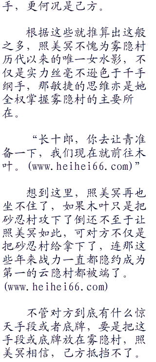 砂忍村驻于沙漠地带,白昼炎热无比夜里寒冷至极;云隐村群山高耸,雷音不断;岩隐村顾名思义,天然而成或人为的的岩石乃是土之国的最美风景,而木叶的繁华当属整个忍界最好的地带,否则也不会成为忍界所有国家眼中的肥肉。