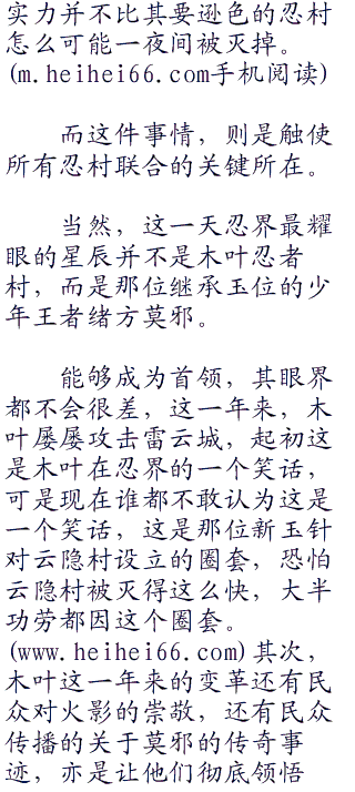这一天,忍界仿佛脱离了平静多年的状态,瞬息间沸腾了起来,无论大中小的国家和忍村,首领都陷入了极度慌乱,一个个都向同盟国或邻国发起邀请函,开始商议联合之事。自战国时期结束,初代火影千手柱间开创忍村时代,历史以来,三次忍界大战,虽然都是因木叶而起,伤亡无数,可最终的结果无不是再次签下同盟协约或就此罢战,五大国乃是维持忍界平衡的巨鳄霸主,从未出现过一方大国被敌方端了的先例。