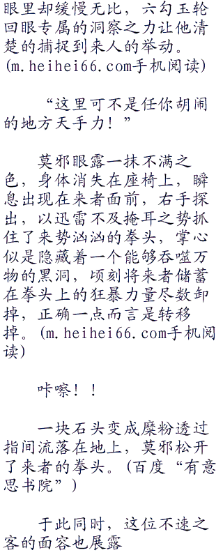 不速之客的身法在别人眼里确实迅速无比,但在莫邪这双