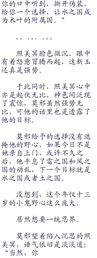 不过,照美冥这么做,也是想要把自己这次过来的诚意告诉木叶。