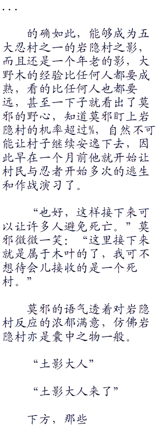 下一刻,莫邪往岩隐村直飞而去,丝毫没有隐蔽的行为,一个综合实力比云隐村和砂忍村都要逊色的岩隐村,能够让他稍微重视的人只有两天枰大野木而已。