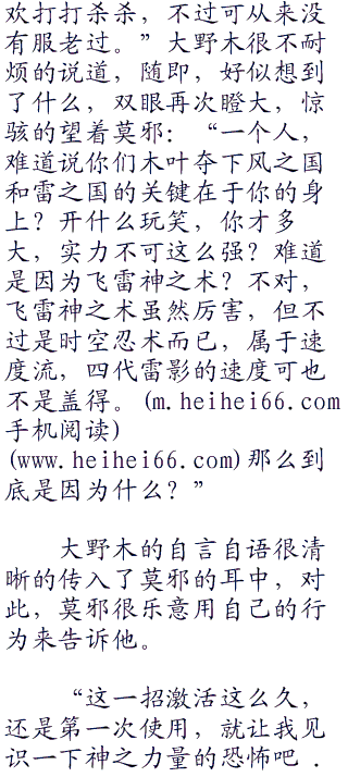 在莫邪打量的同时,往他飞过来的大野木“四九七”也在打量这位近段时间忍界唯一主角没有之一的少年,盯着那张刚褪去稚嫩还显得年轻无比的面庞,心中不由涌现一股浓郁的挫败感,想当初他这么大的时候,才不过是小小的中忍,而人家,以如此年龄却做出连宇智波斑都没有做到的壮举。