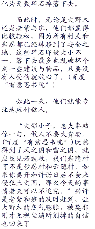 犹如阴阳相反,岩隐村的土遁绝对是忍界最强大的土遁,加重岩之术可让大野木拥有强大的攻击和防御力量,而轻重岩之术更是可以令自己变得轻如鸿毛,速度得到大幅度的提升,两者若是能够转换自如,这两招忍术完全可以培养出一个强大的精英上忍,更何况这两招忍术之上还有它们的强化版。