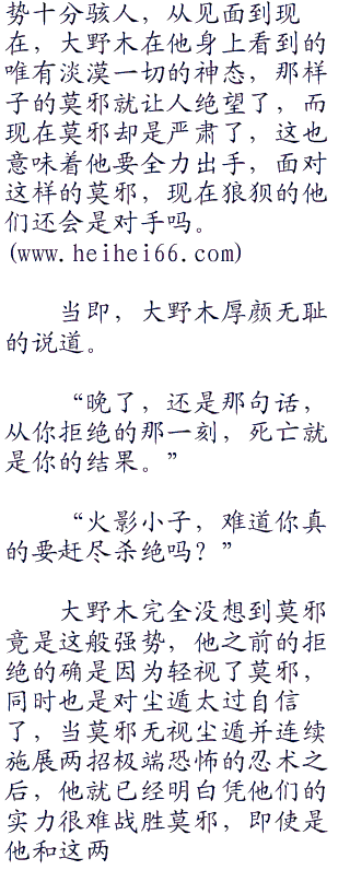 “好可怕的敌人,那就是传说中轮回眼的能力吗?”班仰首望着仍是那副气定神闲模样的莫邪,语声沉重道。