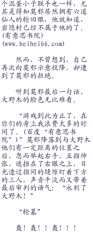 听到班的自语声,本来在恢复体力的大野木顿时激动起来:“你说那个火影小子拥有三大瞳术之首的轮回眼?你是怎么知道的?”
