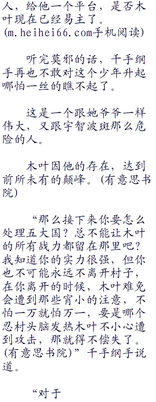 “野心?或许是吧!”莫邪眸宇掠过一丝迷茫:“我不过是想,为什么每次战争都是木叶引起?就因为木叶占据忍界最盛茂的领土,所以他们就要攻占?既然如此,我们为何要等待别人挑起战争,同样的,我也知道有五大国在的忍界就肯定会再次出现战争,就如第一第二第三次忍界大战那般,我们木叶绝对会是其他忍村眼中的一块肥肉。我不喜欢被动,所以主动挑起战争,只要把他们完全攻“四三三”占,一统不就没事儿了。”
