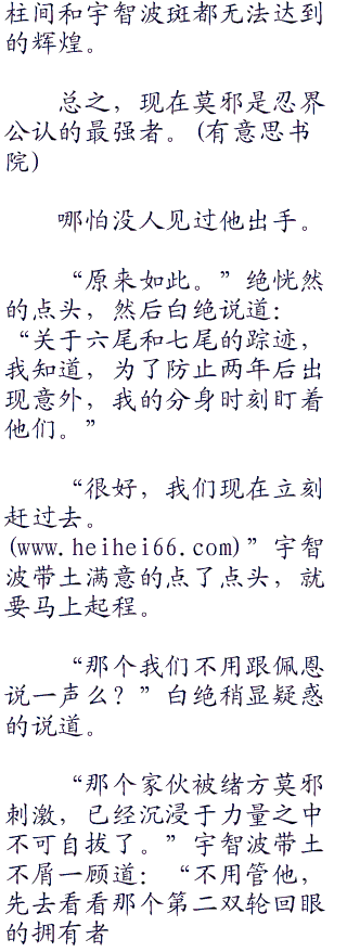 特别是下棋千年的黑绝,相继绪方莫邪这个恐怖变数,天赋比大桐木羽衣还要惊人的少年之后,竟然又出现一个拥有轮回眼的家伙,而且这个不知是敌是友的家伙目标竟然是捕捉尾兽,这无疑打乱了他复活辉夜姬的全盘计划。