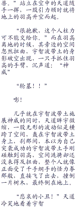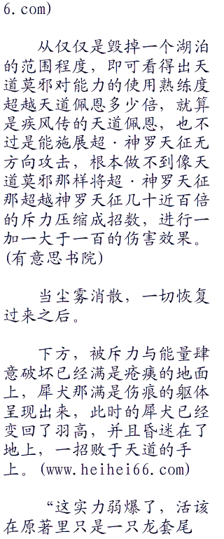 朝着天道飞去的羽高终于明白六尾犀犬为何会安分并自愿将自己力量供应给他的原因了,就在被万象天引的引力束缚那刻,羽高浑身解散都无法挣脱那枷锁捆绑的束缚状态,这就是传说中三大瞳术之一的
