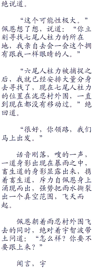 毫无意外,佩恩得知别的人有跟他一样的神之眼,冷漠的表情终于变化了,一股危机涌现在心头。