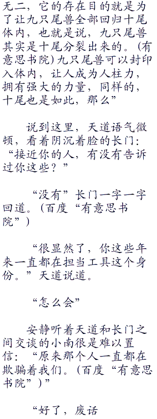 “看来你也想到了。”天道淡淡道:“不错,六道之术里的幻龙九封印,就是专门为封印尾兽之力而存在的秘术。这种秘术独一