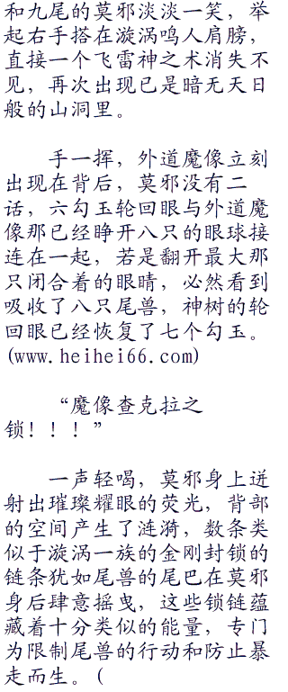 这一刻,九尾彻底明白了:“原来如此,你竟然真的动手了?也对已经收集八只尾兽的你,目的再明显不过,区区村子之人的身份又如何比得过九尾之力,该死的绪方莫邪,野心比宇智波斑还要庞大,老夫悔恨啊,早知道就主动与这个小子交涉,也不至于现在人柱力被迷惑,尾兽被抽取带着不明所以的念头死去。”
