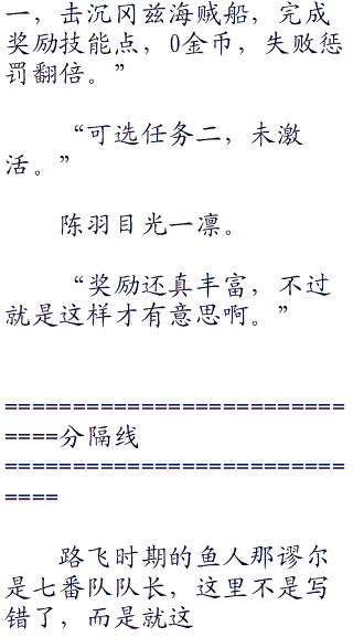 打开门,一个挎着长刀的海贼恭敬的弯腰:“陈羽队长!老爹现在甲板召开队长会议!请您立即前往!”