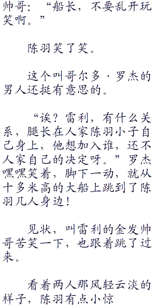 马尔科一下子伸手抓向陈羽,想把陈羽给扔到旁边的船上去,陈羽却躲了一下,伸手从长袍里拿出了短棍。