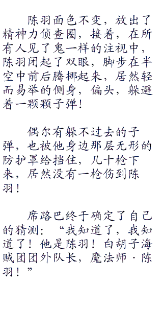 另一边,陈羽静静的悬浮在子弹海贼团的上空,在海风的吹拂下,法师长袍猎猎作响。