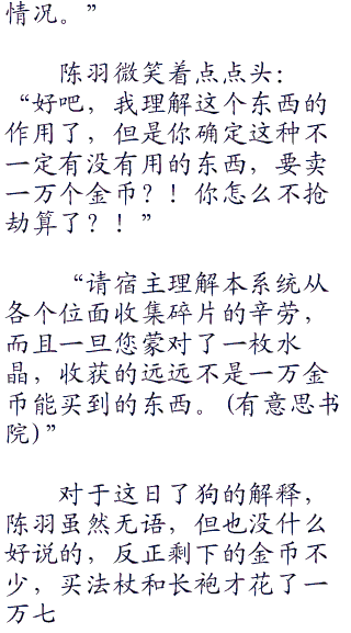 接受了任务后,陈羽就自动获得了闪烁魔法,和之前几个奥术系魔法不同,闪烁是从系统兑换过来的,所以陈羽还不能如臂指使,在下一次实战之前,必须好好熟悉一下。
