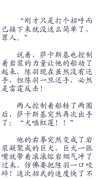 两人之间的距离有好几米远,但是萨卡斯基的拳头刚挥出来就化作了一大块岩浆,轰隆隆的冲向陈羽,都不需要跑动控制距离!
