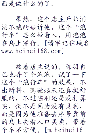 这座岛,有一种童话般的气氛,空中总是飘着好多漂亮的肥皂泡,在阳光的映照下闪着七彩的光芒,陈羽试着用手拍了拍,发现这泡泡的韧性非常好,甚至可以让人坐在上面。