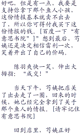 可惜不知道那个鱼人小孩是男孩还是女孩,要是女孩的话,自己还能玩玩养成之类的,肯定很有意思。