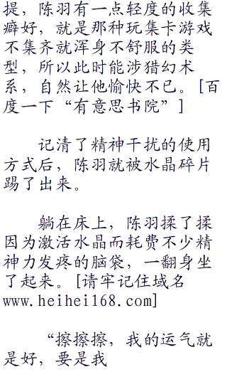 精神干扰,被凯尔萨斯王子列入了奥术魔法的幻术系中,确认了这一点后陈羽简直忍不住想要放声大笑。