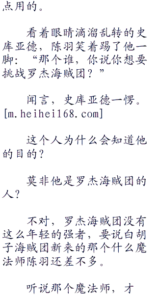 “当然是让你知道,你在和什么人说话!”斯库亚德裂开嘴露出一嘴牙齿:“老子可是要去挑战大海贼的男人,像你这样的普通人别来多事,小心老子弄死你!”