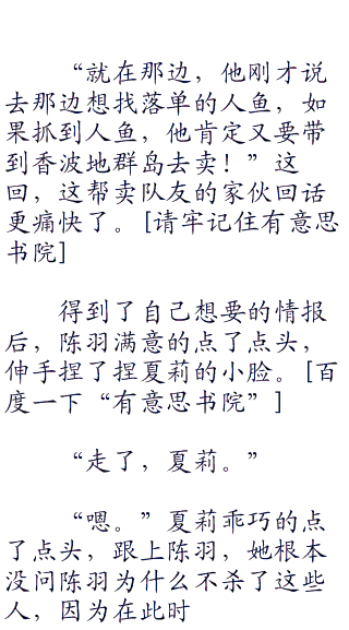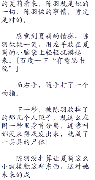 夏莉依然静静的抓着陈羽的袖子,唯一和刚才不同的就是,她已经不是因为紧张而抓陈羽的袖子,而是因为对陈羽的依赖。