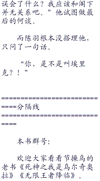 “很好,那么,请告诉我,那个叫埃里克的人,现在在什么地方?”陈羽微笑着问道。