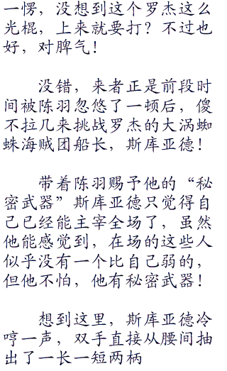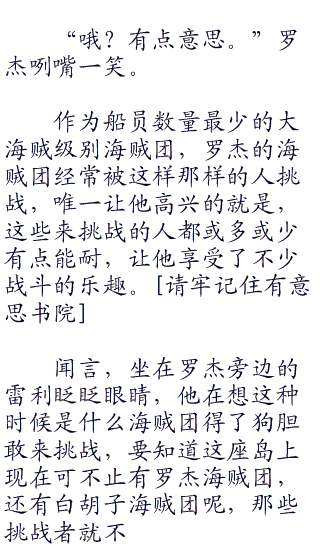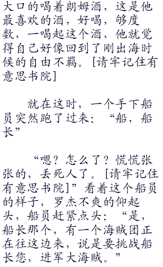 这几天,因为自己的船越造越大,罗杰的心情相当的好,一想到自己即将拿到一艘又帅又能打的船,他觉得这个世界都变得美好起来了。