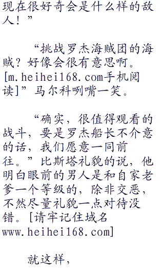 在这美好心情的作用下,罗杰脾气也跟着好了起来,这几天白胡子好几次想挑衅他打一架,都被他嘻嘻哈哈的糊弄了过去。
