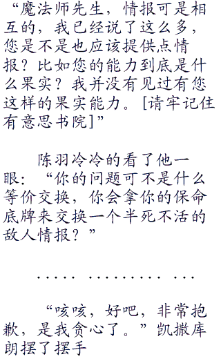 似乎是看出了陈羽的顾忌和想法,凯撒库朗裂开大嘴摆摆手:“放心,我没有带任何能威胁到你的东西,至于我的能力我是瓦斯果实的能力者,自然系的瓦斯人,没有什么秒杀技能,你想离开,随时可以做到!”