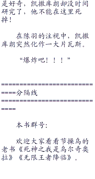 “该死的,这层大网是怎么回事,我的能力完全被限制住了?!”在凯撒库朗的注视中,陈羽怒道。