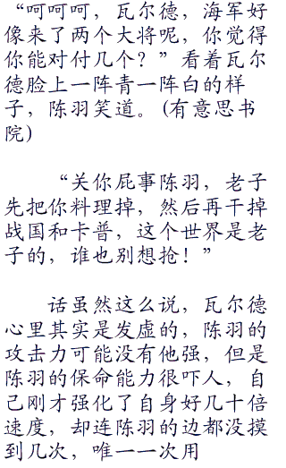 他们在等,等陈羽和瓦尔德海贼团打起来,以陈羽的实力就算不能打爆瓦尔德,也能削弱他不少实力,到时候海军再出马,就能起到事半功倍的效果!