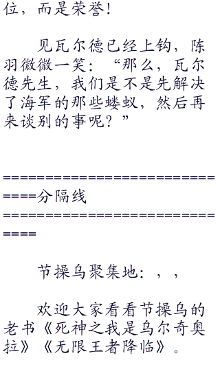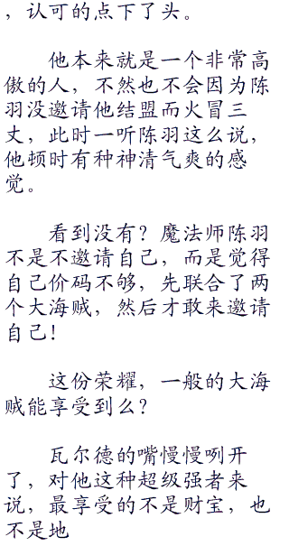 只不过,跟了这么久,瓦尔德海贼团还是没有任何动静,好多人已经开始不耐烦了,这里离无风带不远,天气热的要死,海军在这种地方呆着也难受。