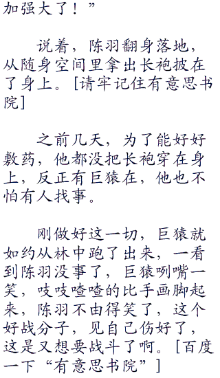 拜巨猿所赐,陈羽的伤势恢复的特别快,本来陈羽还以为自己胸口被打破,得用一个多月来恢复,现在看来,十天内就能痊愈!