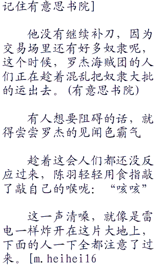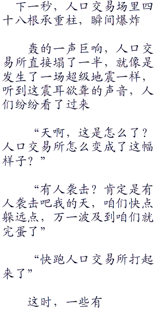 人**易场依然和平日一样,卖家和买家进进出出,不时有一些珍贵的种族被从后门送进来,从前门送出去。
