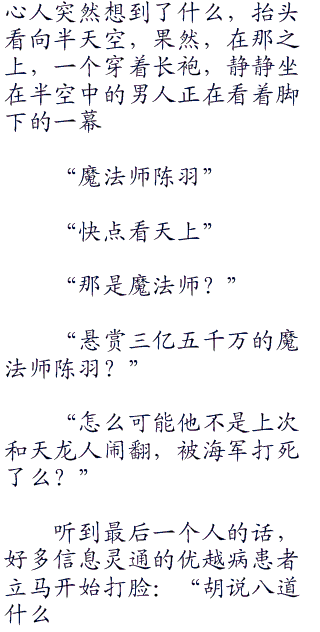 陈羽静静的漂浮在交易场的正上方,双腿交叠,就像是坐在半空中不可视的一个椅子里一样。
