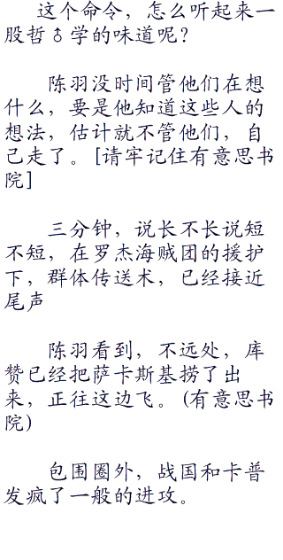 首先他并不愿意单独面对陈羽,那是种折磨,第二他怕自己没救萨卡斯基,之后萨卡斯基的死赖在他头上。