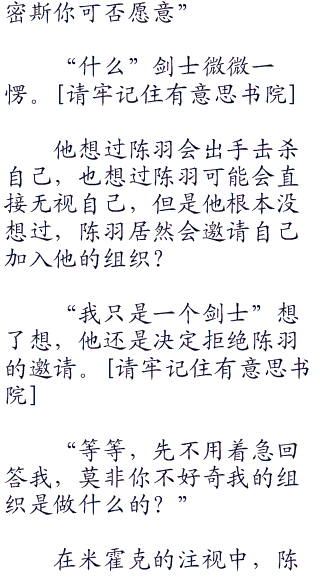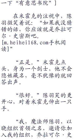 在两人的注视中,陈羽微微一笑,“放心,我没有恶意,只是来和你们聊聊,哦,准确的说,是和你聊聊。”他指了指米霍克。