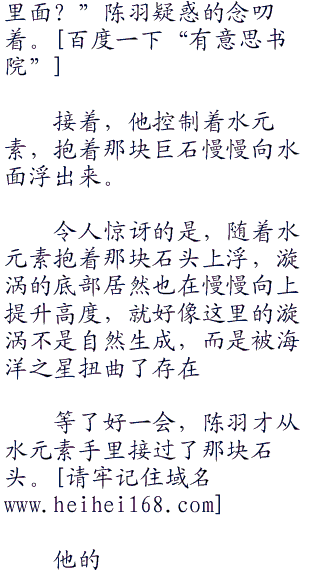 陈羽慢慢闭上眼,把自己的精神投入到了海面之下,静静的看着水元素凝聚出形体,双手抱住了漩涡下面的那块巨石。